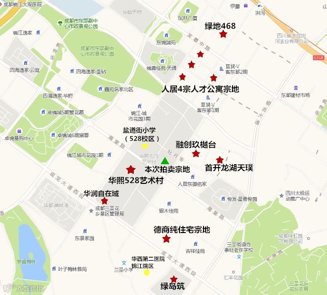 宗地周边,华熙528艺术村、绿地468、绿岛筑、首开龙湖天璞、融创玖樾台等项目均处于期房或现房期。而随着近10万平米的卓锦曼购中心开业、2018年绿地468特色街区商业及伊藤洋华堂亚洲旗舰店的先期呈现;以及年内将投入使用的盐道街小学528校区、盐道街小学卓锦校区、锦江实验外国语小学、树德中学外国语校区、七中育才三圣校区等集中而优质的教育资源;6月底正式运营的四川大学华西第二医院锦江院区等配套,将为区域热度持续升温。