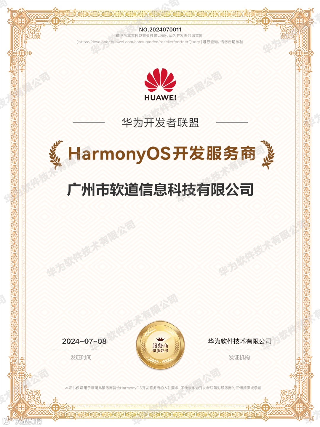 作为鸿蒙生态的深度合作伙伴,软道科技受邀出席仪式,并荣膺 “HarmonyOS开发服务商”,成为华为前批认证服务商。