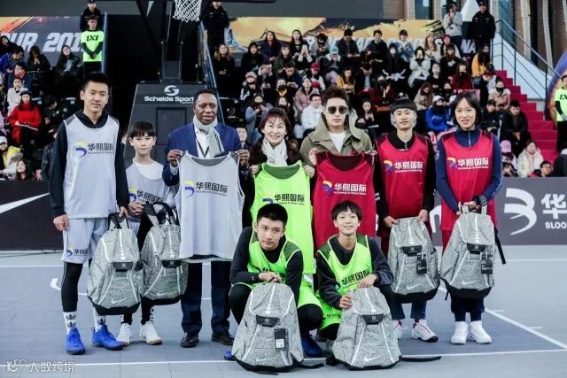 正式比赛开始前,华熙国际投资集团有限公司董事长赵燕、国际篮联副主席尼昂和歌手潘玮柏一起向宋庆龄基金会进行了捐赠。