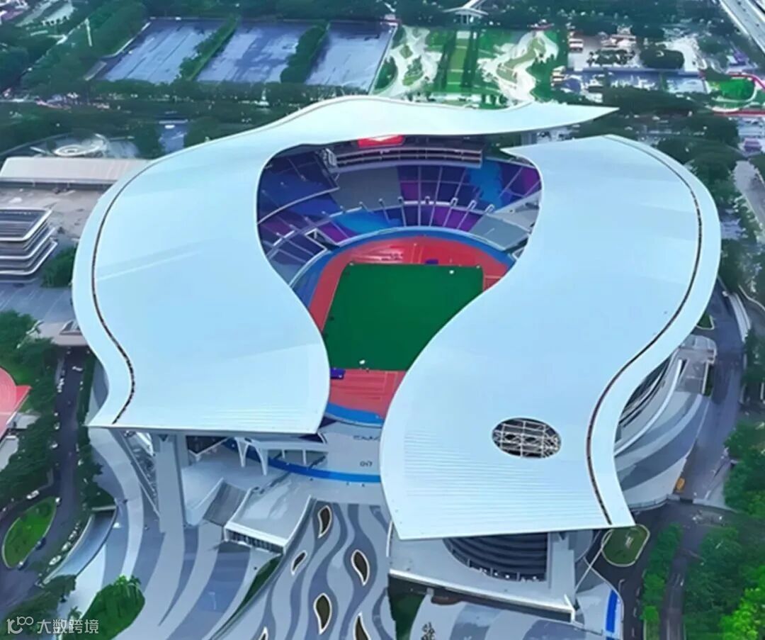 岭南特色设计 主体育场屋面采用分离式飘带造型,模拟运动员冲过终点时终点带飞扬的姿态,同时融入了“木棉盛放”、“珠水婉转”等岭南文化元素;