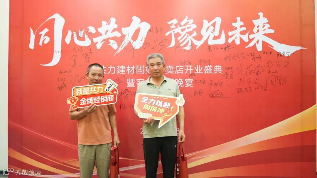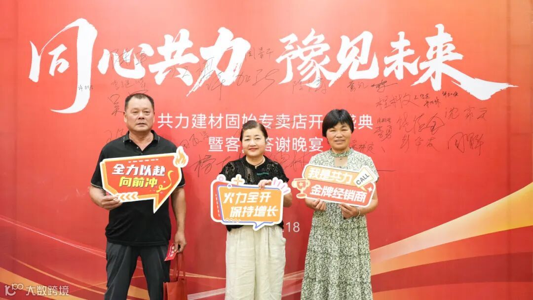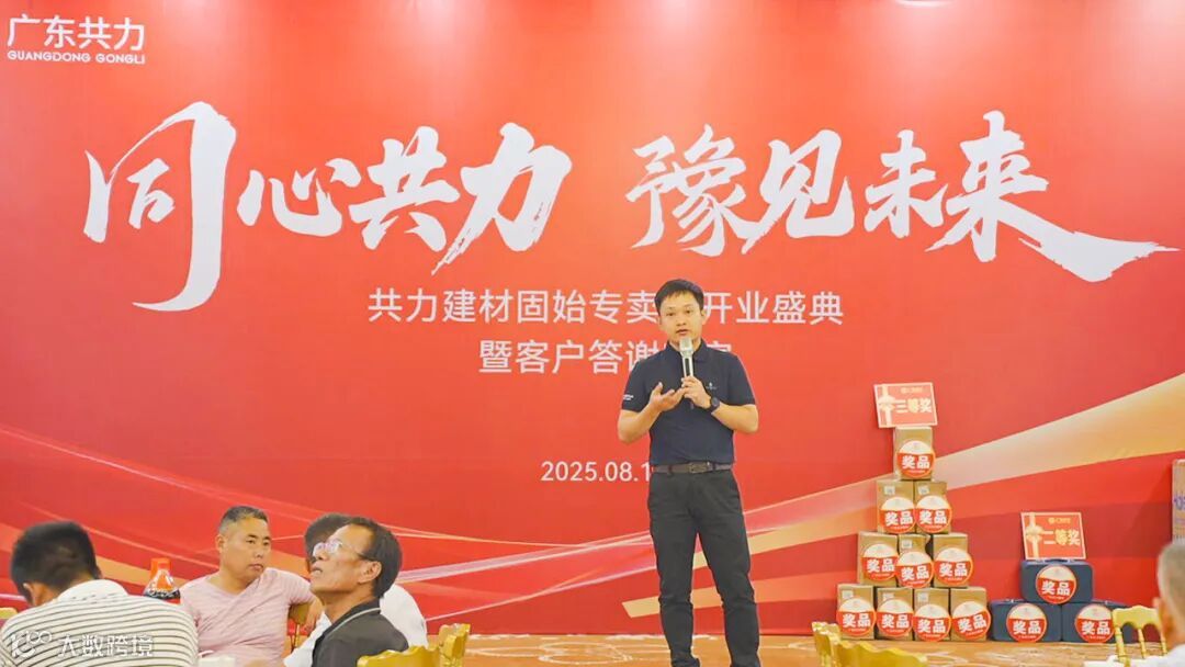 华灯初上,“共力建材固始专卖店开业盛典暨客户答谢晚宴”在温馨氛围中隆重启幕。来自厂家总部、经销体系核心成员、嘉宾亲朋、意向合作伙伴及当地师傅齐聚一堂,在欢声笑语中共襄盛举。