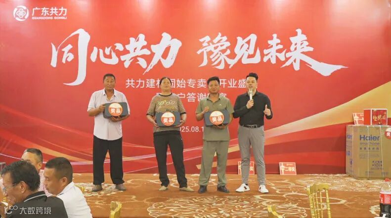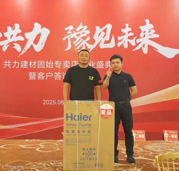 晚宴不仅仅备好了美酒佳肴,更是给现场的嘉宾准备了惊喜,三轮抽奖及额外准备的现金大奖让现场惊喜连连、欢声笑语不断。祝酒环节,全体嘉宾共同举杯,众人齐祝共力建材固始专卖店“开业大吉”,更祝愿未来在双方深度协作中,让共力品质走进更多家庭,合作之路行稳致远。