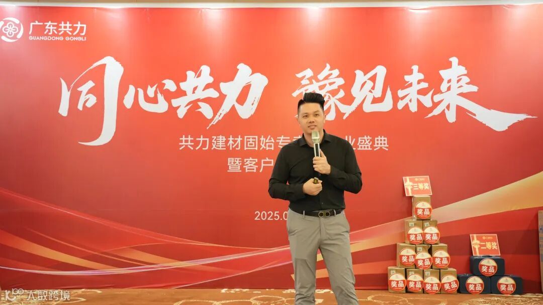 晚宴在温馨的氛围中拉开帷幕,广东共力市场部总监谢永明以沉稳而热情的开场白点燃全场。广东共力固始总经销与厂家代表先后登台致辞,既回顾了合作历程中的信任与支持,也展望了携手深耕本地市场的美好前景,真挚话语引发全场共鸣。
