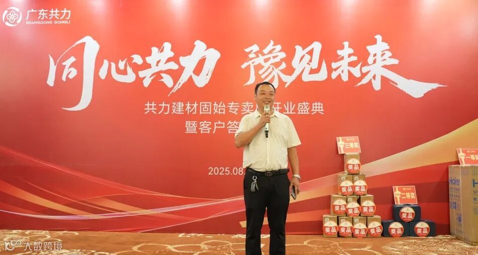 开业致辞中,广东共力固始总经销刘总难掩激动之情,他表示:“选择共力建材,不仅是因为其过硬的产品品质,更源于品牌对精细化运营的坚持,以及对经销商的全力扶持。作为共力第一家全新专卖店,我们必将以‘用心服务好每一位用户’为宗旨,把好产品、好服务带给固始百姓。”言语中满是对未来经营的信心与期待,同时也表达了对当地市场的深入洞察以及为客户提供更加优质的服务与购物体验的决心。