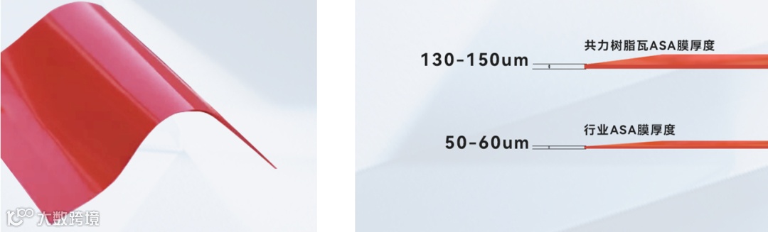 △共力树脂瓦ASA膜厚130-150um,是行业的1.5倍