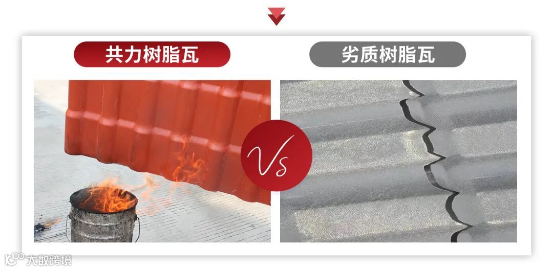 优质的合成树脂瓦选用难燃材料,产品经过国家防火权威部门按GB8624-2006标准检测,防火等级≥B1级;劣质树脂瓦添加了过量增塑剂,有助燃作用,不符合消防要求,且耐候性能差,容易在阳光的照射下易开裂。