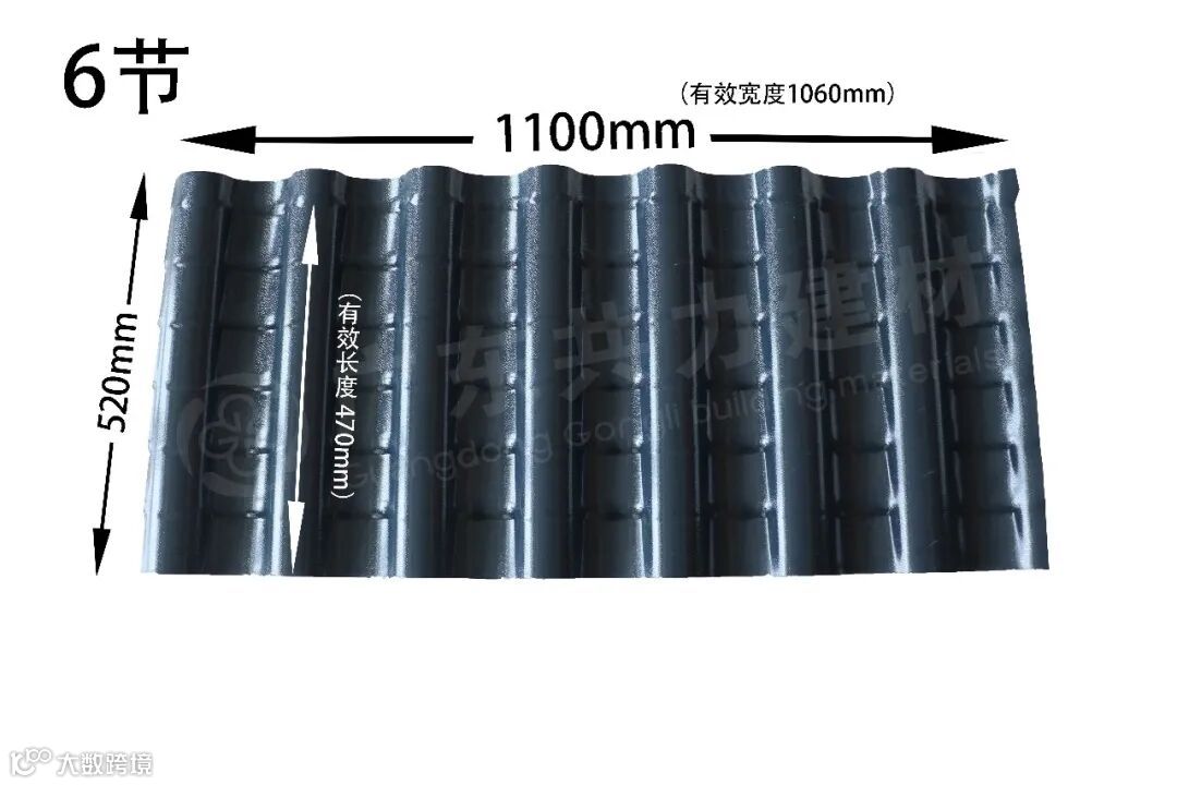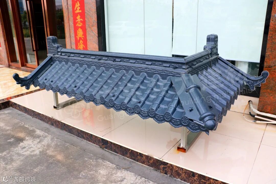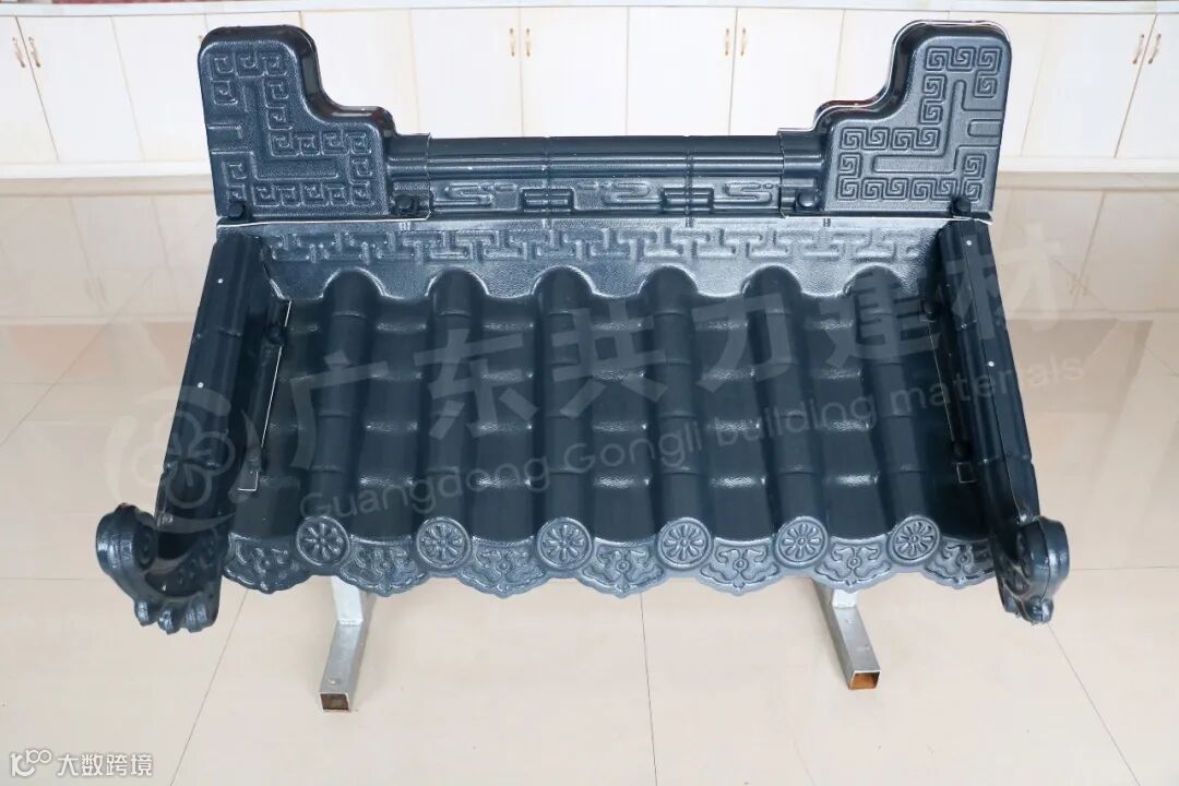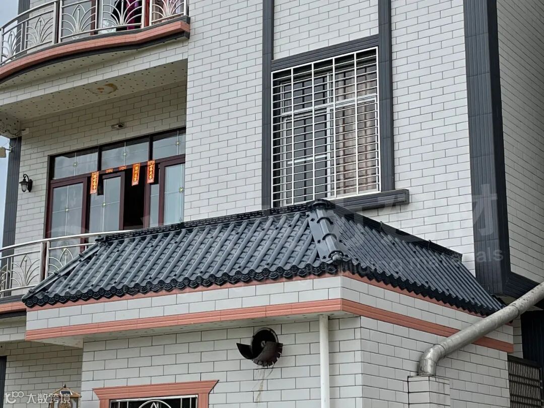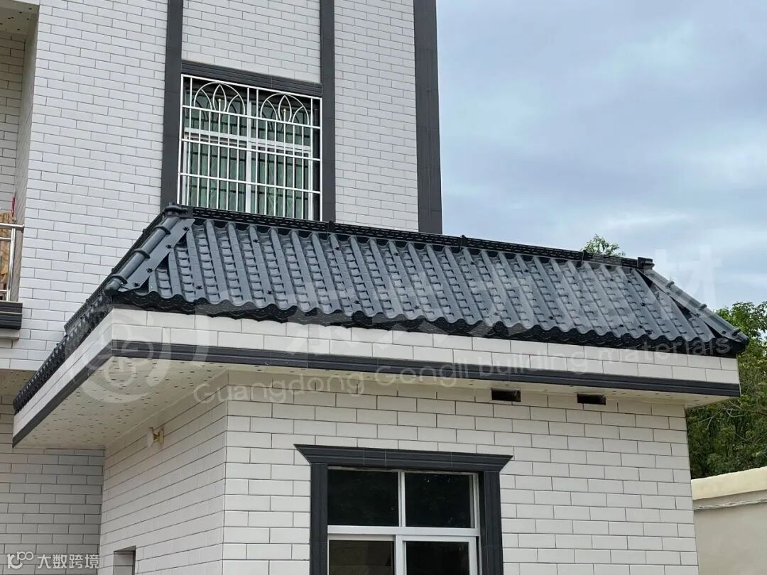 共力仿古一体瓦一体化铸造而成,檐口平整光滑,使用进口ASA原材料,经久耐用。印有精美花纹,独特设计,更显优雅。
