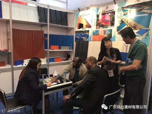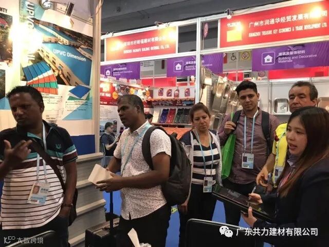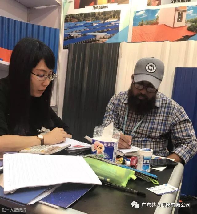 来者皆是客,广东共力建材的小伙伴们耐心接待每一位国外客商,答疑解惑,阐述卖点,将他们来到展位的需求、感兴趣的产品、产品规格、颜色等每一个交易核心关键点都一一记录在案,便于展会后更好的跟进和服务客户。