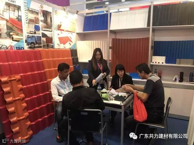 本次共力展区号:11.2k10,共力建材借助广交会连接海内外的平台优势,推出众多转型升级的高新技术产品,并结合目标市场需求,针对性重点打造ASA合成树脂瓦、A-PVC塑钢瓦、ASA复合瓦等风格的产品体验区。开展第一天便吸引了大批慕名而来的国际采购商的热情关注和有效互动。