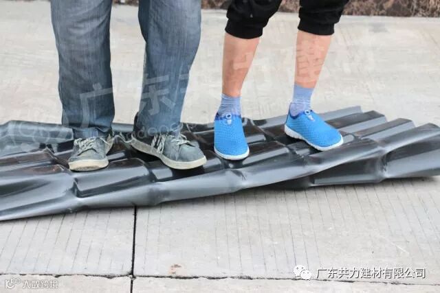 共力树脂瓦折叠以后,加上2个成年男人的重量,另外在瓦上不断跳动,瓦都没有断裂。共力好瓦,看得见的质量。