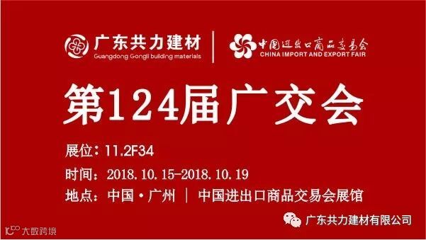 金秋十月,我们迎来了第124届中国进出口商品交易会的召开。在这个中国目前历史较长、层次较高、规模较大的综合性国际贸易盛会上,共力建材将一如既往地为大家带来优质产品和贴心服务,我们相约11.2F34展位。