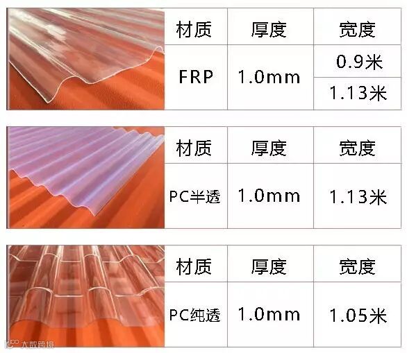 采光瓦包括PVC半透明瓦、PC中空阳光板PC异性板、FRP采光板等,分别采用聚录乙烯树脂PVC、PC聚碳酸酯板、玻璃纤维等材料,并结合先进的工艺技术制成。