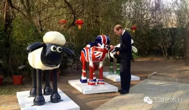 ▲威廉王子在中英文化交流年启动仪式上为“小羊肖恩”雕塑点睛