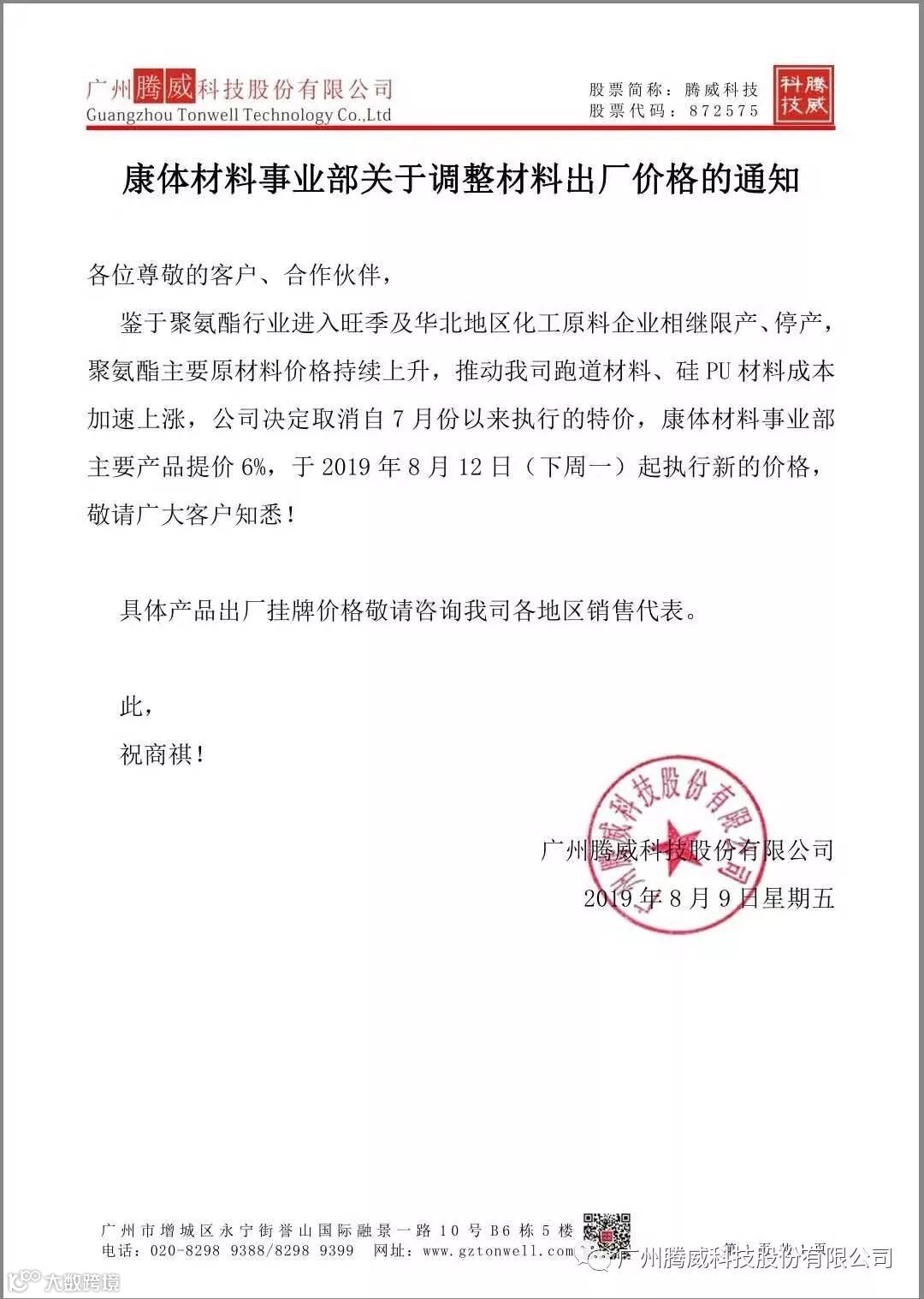 广州腾威科技股份有限公司成立于2008年,是一家集研发、生产、销售于一体的国家高新技术企业、全国首家专业开发生产绿色环保的运动场馆地面材料、海绵城市及市政路面防滑铺装材料、新型商业地坪材料的新三板挂牌上市企业,公司股票简称【腾威科技】,股票代码【872575】。