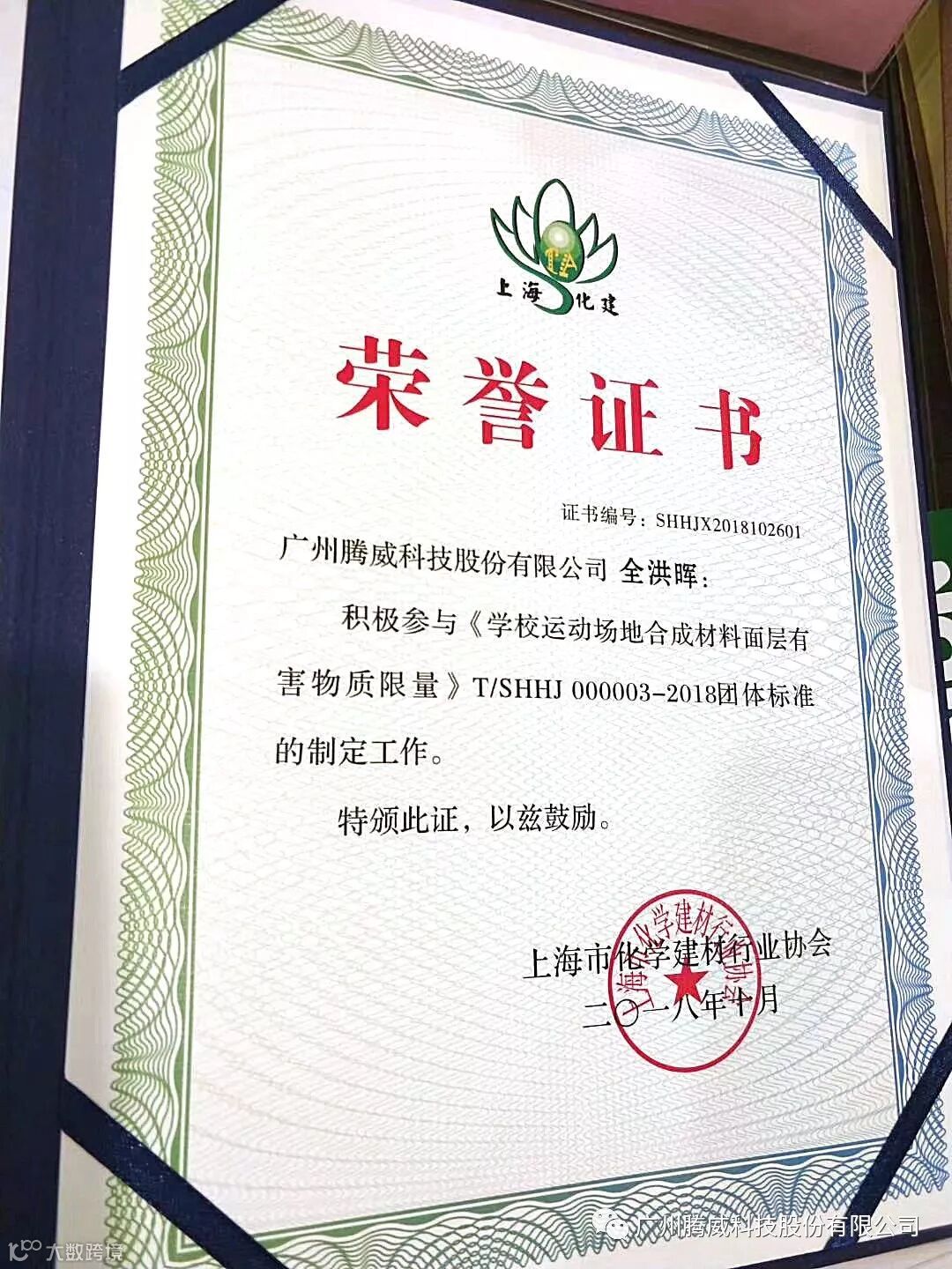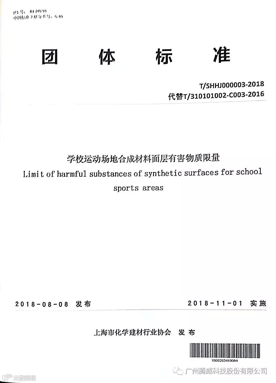 我司作为一家新三板挂牌的公众企业和体育行业重环保的领头军,荣幸被上海市化学建材行业协会的邀请参加编写《学校运动场地合成材料面层有害物质限量》团体标准,是我司实力的体现!