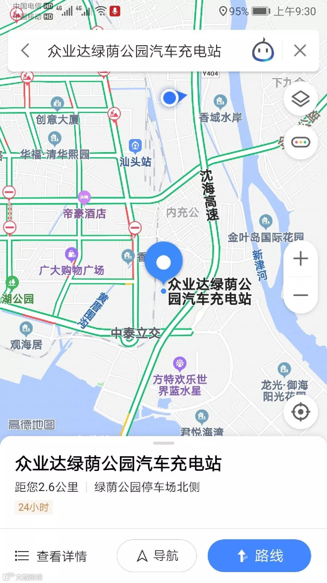 该充电站距离G15高速汕头出口、火车站均不到几分钟的路程,地理位置极其优越!绿荫公园环境优美,媲美天然氧吧,充电站不仅配套60-90KW及以上功率直流快速充电桩共10条,还配套德国菲尼克斯充电枪!绝对能让您体验到意想不到的速度与激情!