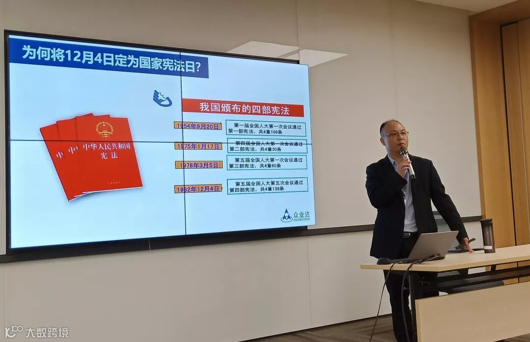 2019年12月4日是第六个国家宪法日。为加强宪法教育,贯彻宪法进企业精神,全面推进员工学法懂法,法务部组织了以“全民普法,宪法进企业”为主题的宣讲活动,并邀请了纪树彬律师为企业员工进行授课普法。