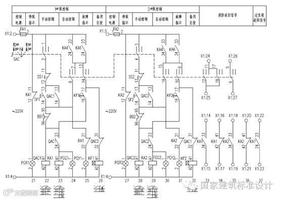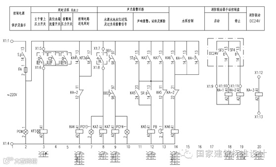 5.消火栓用消防水泵和自动喷洒用消防水泵内容合并为消防水泵控制电路图。