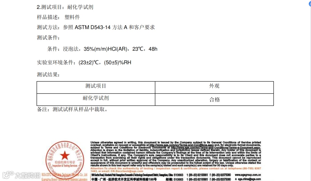 SGS检测进行判定无褪色、脱层、起泡等情况,所检项目均达到标准要求。