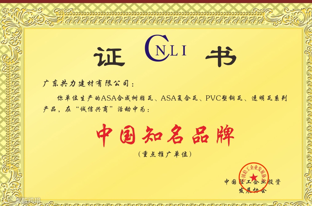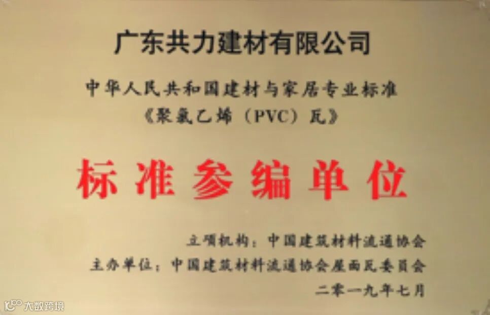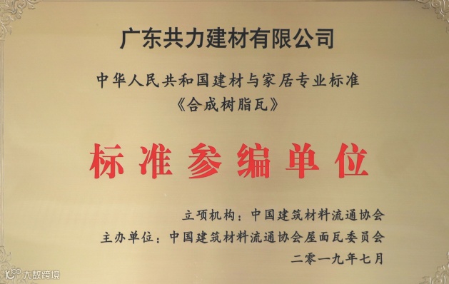 以专业实力赢得市场认可,荣获多项国家级、省市级荣誉认证。包括《合成树脂瓦》标准参编企业、《聚氯乙烯PVC瓦》标准参编企业、国家高新技术企业、佛山市“专精特新”企业等荣誉。