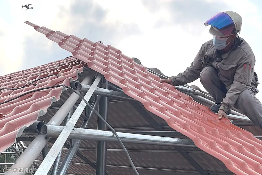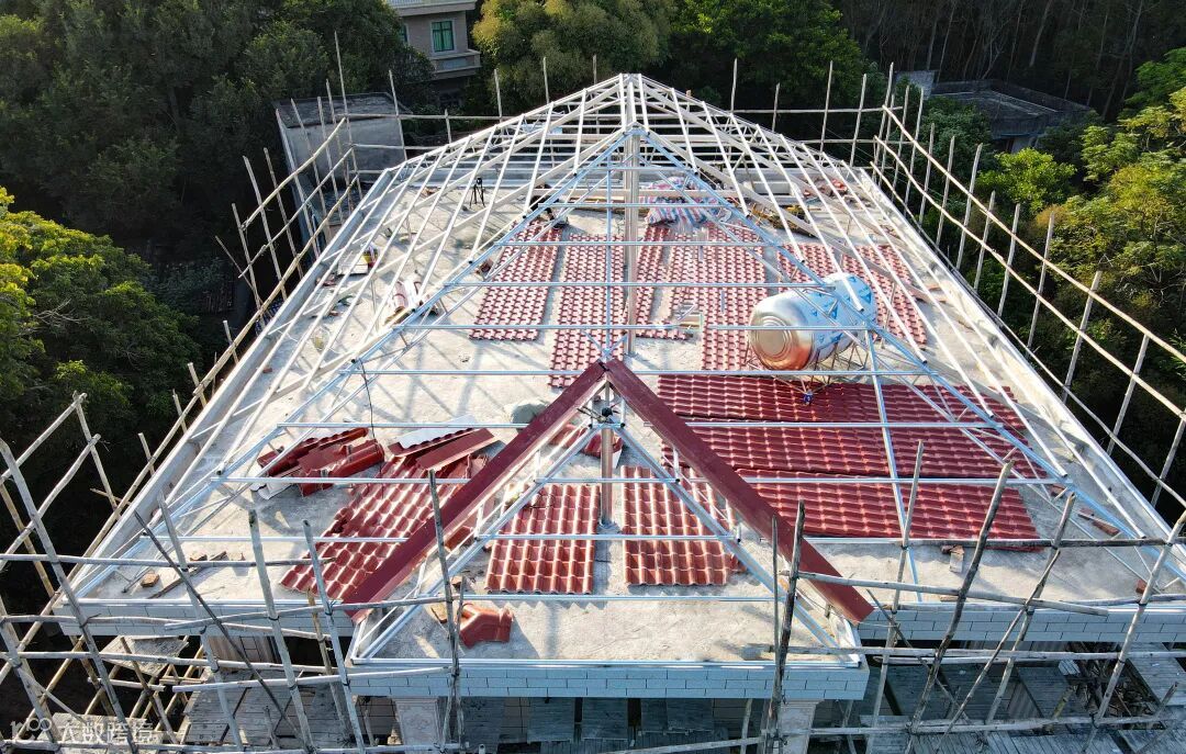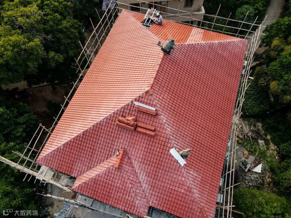用水泥砂浆填补屋顶凹陷,误差≤3mm,避免瓦片受力不均。