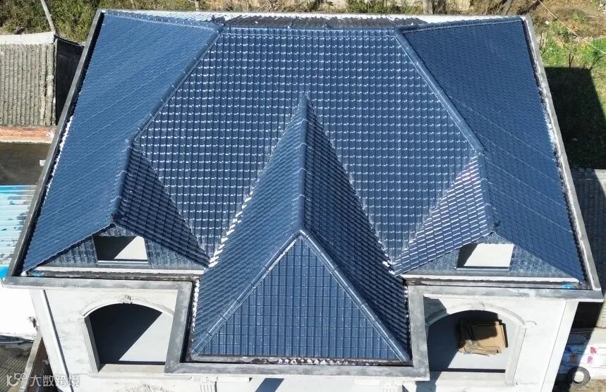 三维交汇的精准裁剪与拼接,斜脊(转角)是屋面斜向交汇线,对瓦片的切割精度和安装技巧要求极高。