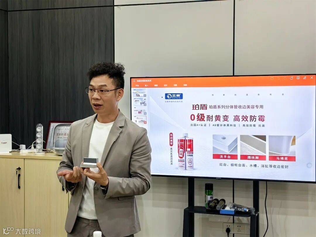 最好的说服力,永远来自产品本身。广西胶多多团队此次到访,重点聚焦于“珀盾抗晒”系列矩阵-珀盾抗晒美缝、珀盾抗晒彩砂、珀盾收边美容胶。在会议室之间,三林美缝林总针对产品的核心逻辑进行了多维度的拆解。