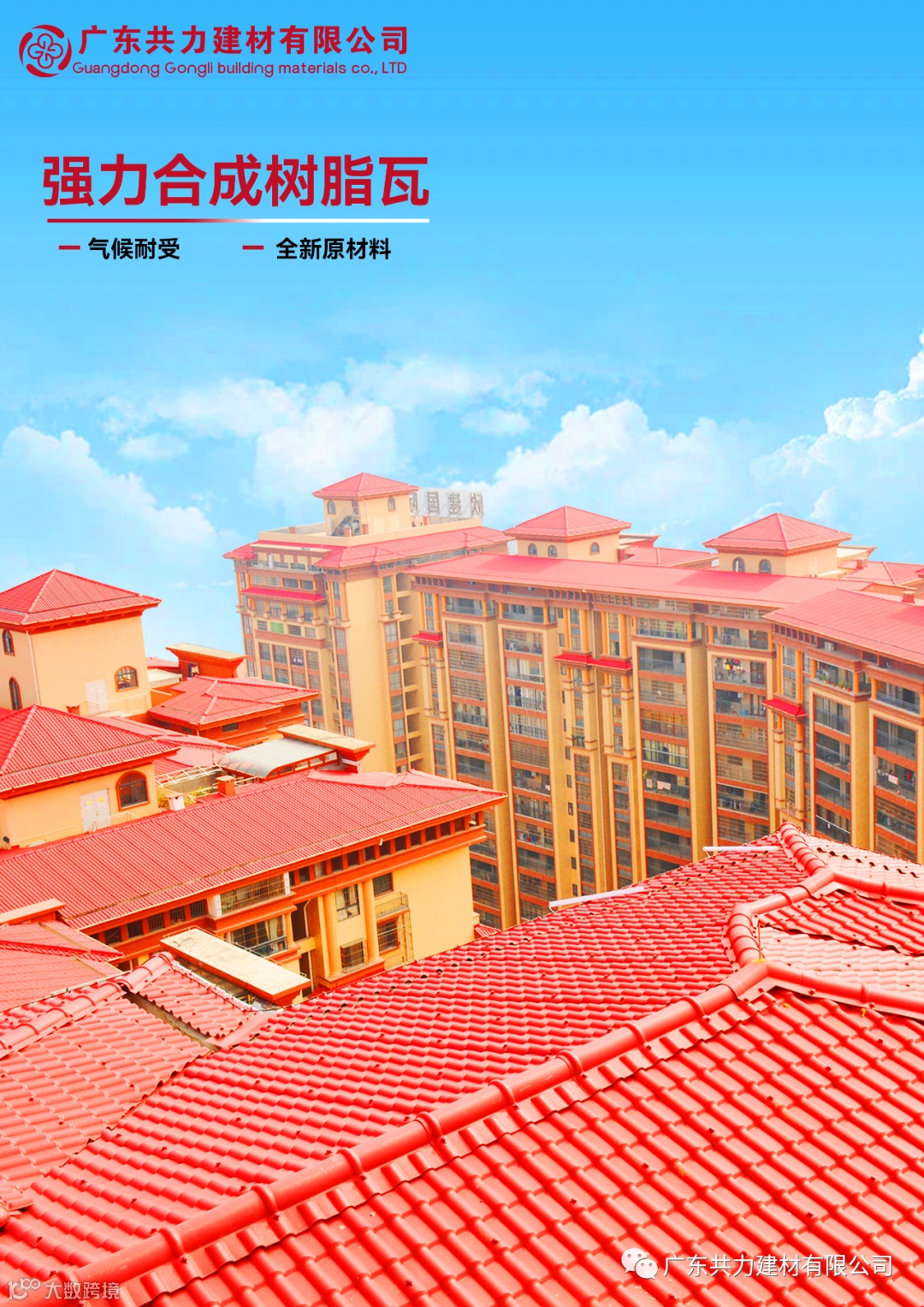 产品描述:共力强力合成树脂瓦以高强度的纤维网格作为骨架,上下层采用高韧性抗腐蚀的PVC层,表层采用高耐候进口ASA层,采用四层复合共挤技术一次成型。