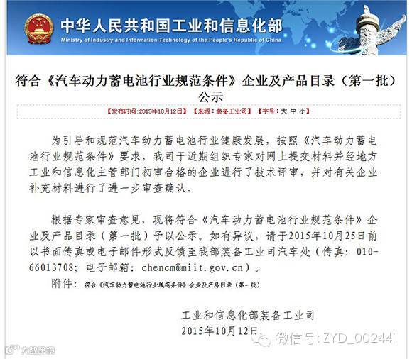 10月12日工信部公布符合《汽车动力蓄电池行业规范条件》企业及产品目录(第一批),旨在为引导和规范汽车动力蓄电池行业健康发展,名单包括10家公司,涉及多家上市公司相关企业。