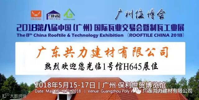 借助这次的广州瓦业展,再次把共力品质推向国际市场;共力人将始终秉承“诚信、创新、合作、激情”的理念,以赤诚之心、凭借共力的优质瑧品及完善的售后服务获得客户的认可。