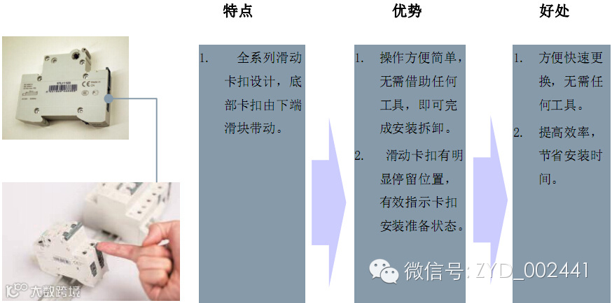 小型断路器——5SY…CC独特优势→滑动卡扣设计
