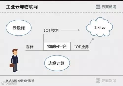 " 一般企业所说的工业互联网平台,主要是指工业云,是应用服务层。工业云和物联网平台有所不同,物联网平台本身并不包含如传感器等硬件设备,功能可繁可简,从激活物体相连到带有分析、数据库甚至可视化等功能。"
