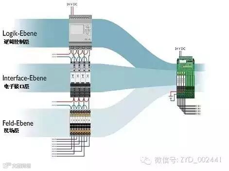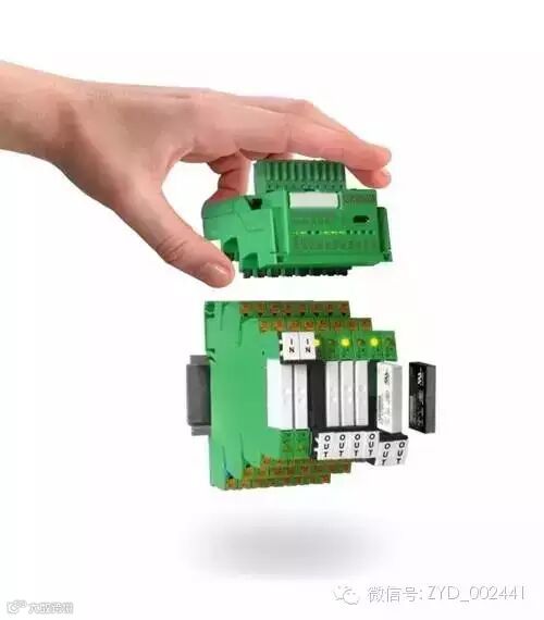 继电器产品通常用于控制系统和现场层之间的信号耦合,实现电平转换、电气隔离和触点扩充的功能。为了增加自控系统的使用寿命,继电器这样的开关元件通常置于系统最外侧,以便于维护和更换,而传统的逻辑控制模块,其开关元件焊接在模块内部,不方便进行更换,因此必须通过外接继电器与I/O信号连接。使用菲尼克斯电气的可编程逻辑继电器产品,可轻松实现继电器与控制系统的完美结合,系统易于实施,继电器更换方便。