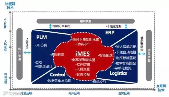 决定个性化订单怎么走,从用户那里是走向虚拟设计,还是直接走向智能生产,还是直接到智能物流,主要不是由机器人或传感器说了算,而是由这个智能总线,或iMES说了算。