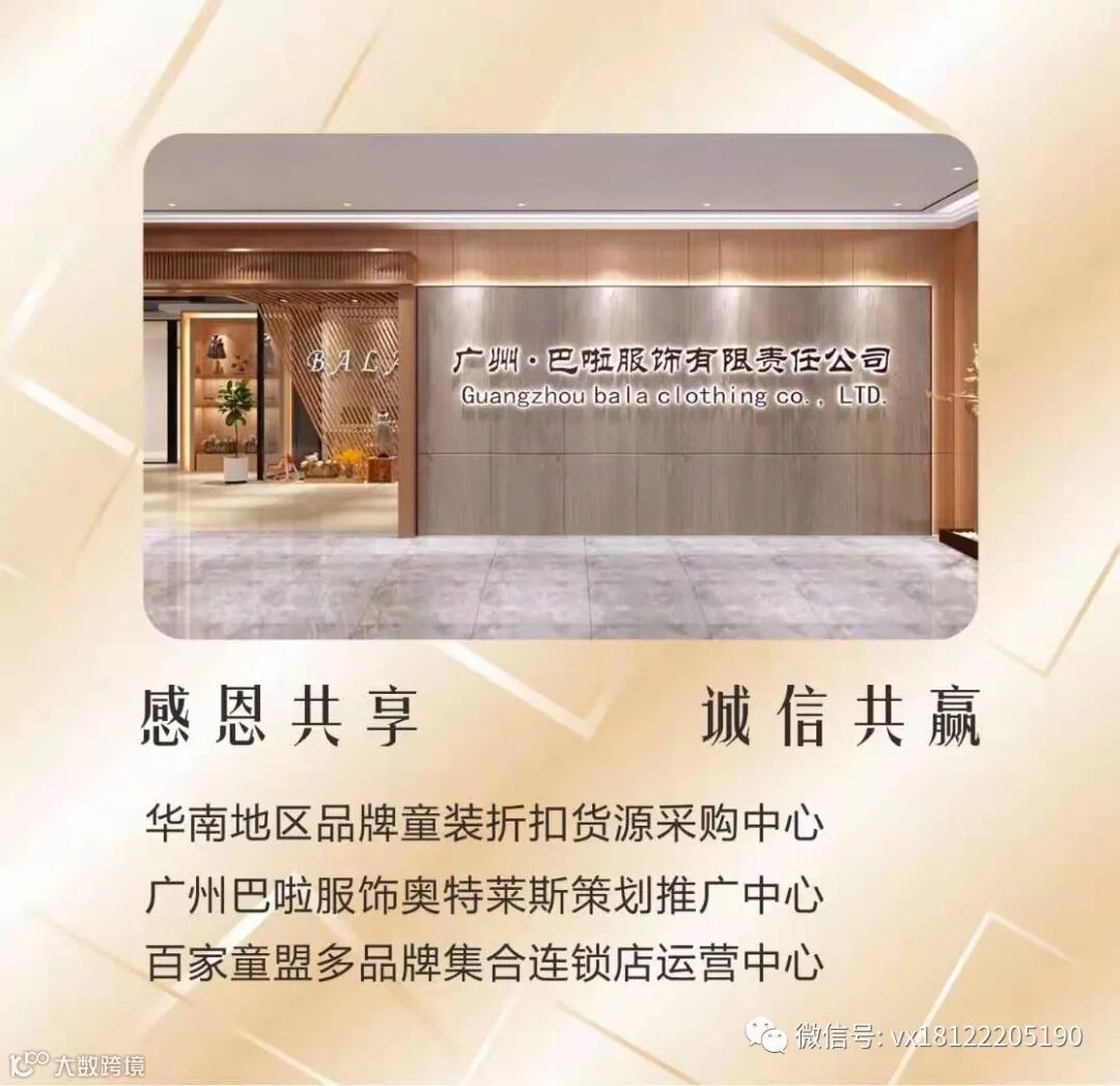 广州巴啦公司主要以广州、深圳、香港、上海,北京、武汉、东莞等中高档品牌童装为主,公司仓库常年的库存保有量在40万件左右,品牌的数量保持在30-40个左右,例如:【杰米熊】【熙熙布衣】【半糖小记】【李田】【浪漫小猪】【乐地】【草莓家族】[莫小夕]【吾名堂】【361】【特步】【欧抱抱】【小方块】【越也】【铅笔俱乐部】【安踏】【小鬼达人】【芭巴芭瑞】【乐果果】【放大镜】【妈恩蓓】【3322】【逃家小兔】【棉来啦】【因否】【麦哈派】【UAZA】【衣尺衣寸】【欧布豆】 【比尔】【衣拉拉】【瑁恩瑁爱】【喔也】 【萌度】 【森点】 【摩卡贝贝】 【田果果】 【花田彩】 【丫噜丫噜】【巴布豆】【巴拉巴拉】 【小资范】【鲨鲨舫】【欧抱抱】【小猪班纳】【迪士尼】【巴布豆】 【史努比】 【小黄鸭】【剑桥】【巴啦巴啦】【猫咪儿】【欧恰恰】【B4you】【蚯蚓物】【宝儿汪】【粉丝摩思】【彩虹森林】【安娜爱登】【时尚世家】【凯莉贝尼斯】【蓝色大象】【樱桃巧克力】【依卡尔】【卡姿果果】【小树园】[莫小夕]【朵娜公主】【欢乐小马】【紫邻】【林芊美眉】等品牌四季供货,价格非常具有市场竞争优势,几百上千个款式,适合年龄:2-15岁,中童居多,充足的货量,多元的品牌,让全国各地的经销商们永无断货之忧。