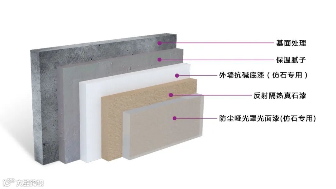 供应材料:反射隔热真石漆、抗碱底漆、防尘哑光罩光面漆等