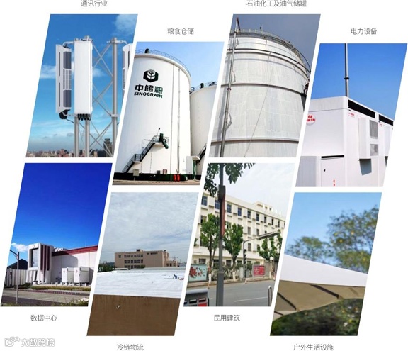 该系列产品可广泛应用于建筑物外墙、屋顶、电力通讯、化工储罐、粮库和户外生活设施等。对于没有空调的建筑物,能降低室内温度;而对于有空调的建筑物,则可以降低能耗,建筑节能,对于我国双碳战略目标的实现能再添一笔助力。