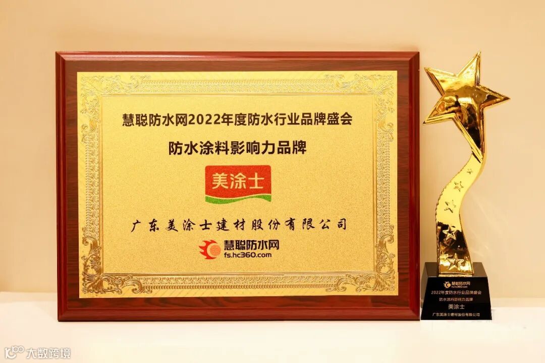 2022年度涂料行业影响力品牌与2022年度防水行业影响力品牌颁奖盛典同期举行,从数千家企业中评选出的二十项影响力品牌大奖在行业瞩目中重磅揭晓。美涂士工程荣获“外墙涂料影响力品牌”、“墙面漆影响力民族品牌”、“防水涂料影响力品牌”三项大奖,用实力彰显了美涂士在涂料与防水领域的品牌影响力。