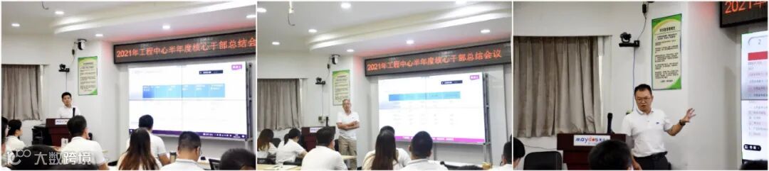 随后工程中心大客户部、渠道部各负责人依次汇报2021年上半年度各项指标完成情况,具体分析工作中存在的问题与解决办法,并对下半年工作提出可行性建议。