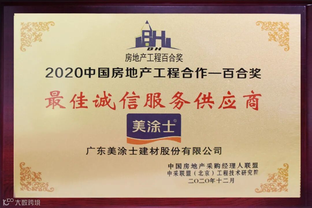 秉持“以客户为中心,与客户共赢”,长期以来美涂士坚持为广大客户提供更优质的服务,并与多家企业建立了长期战略伙伴关系,进一步成为了50%十强+50%百强地产的选择。诚信即生命,连续两年获得此项殊荣,对促进美涂士与合作客户共同稳健发展具有着重要意义。