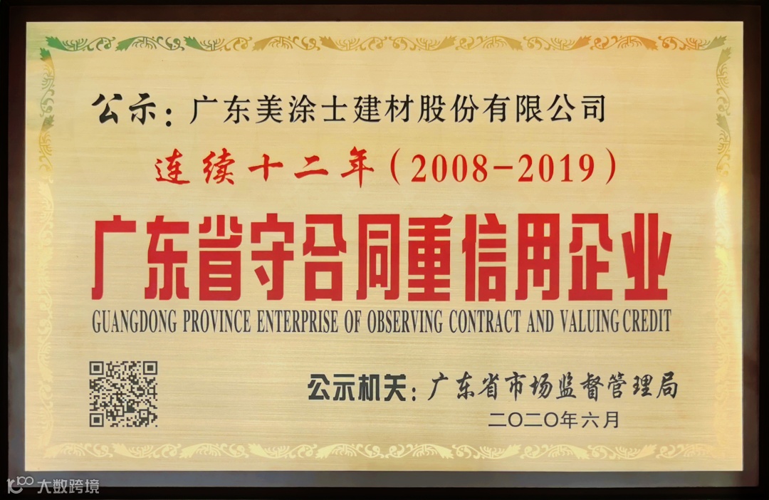 在二十余年稳健发展中,对产品品质与诚信的执着早已成为美涂士人的核心观念。此前,美涂士已连续十二年被评为广东省守合同重信用企业!