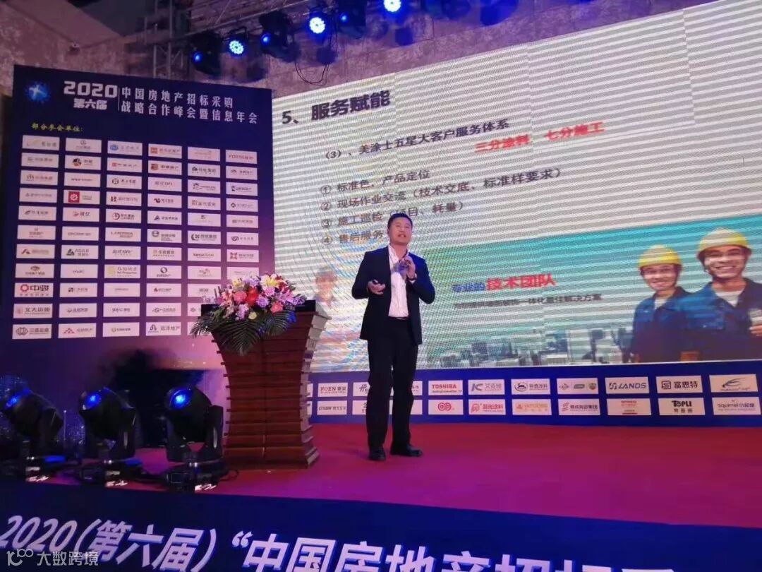 ❒2020年中国房地产招标采购战略合作峰会 美涂士集团副总裁工程事业部总经理钟超受邀出席盛宴,同时与诸多地产界及产业链大咖共同商讨2020年房地产采购格局,并于现场以“赋能增值赢市场”为主题做精彩分享。
