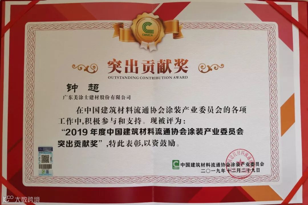 年会颁发了2019年度中建协涂装委各项荣誉和奖项,由中建协涂装委主席、江苏经泰工贸有限公司总经理周毓华先生颁发副主席单位证书和铜牌,鉴于广东美涂士建材股份有限公司在工程行业的突出表现,以及对中建协涂装委员会活动的积极参与和支持,特别增补为“副主席”单位。