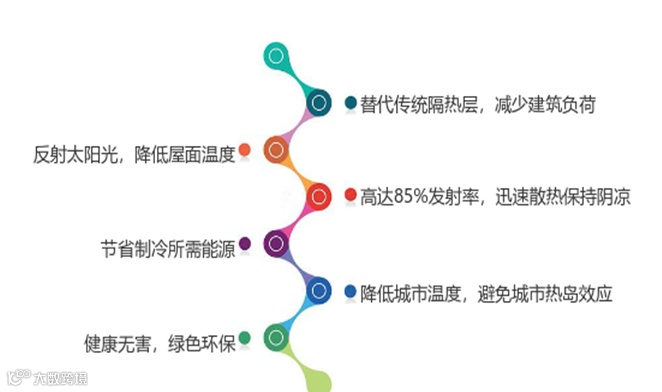 采用该创新技术制得的反射隔热真石漆,不仅具有优异的附着力、粘结强度、出众的花岗岩质感和柔韧性,而且具有高的太阳光反射比和近红外反射比,漆膜在强紫外线下不易褪色。
