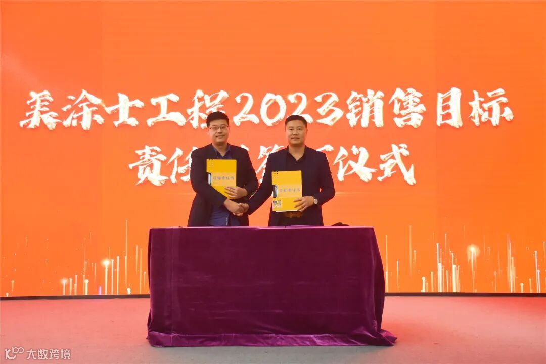 签订仪式最后钟总带领所有团队负责人庄严宣誓:2023,乘风破浪,扬帆远航,万马千军,决胜渠道!