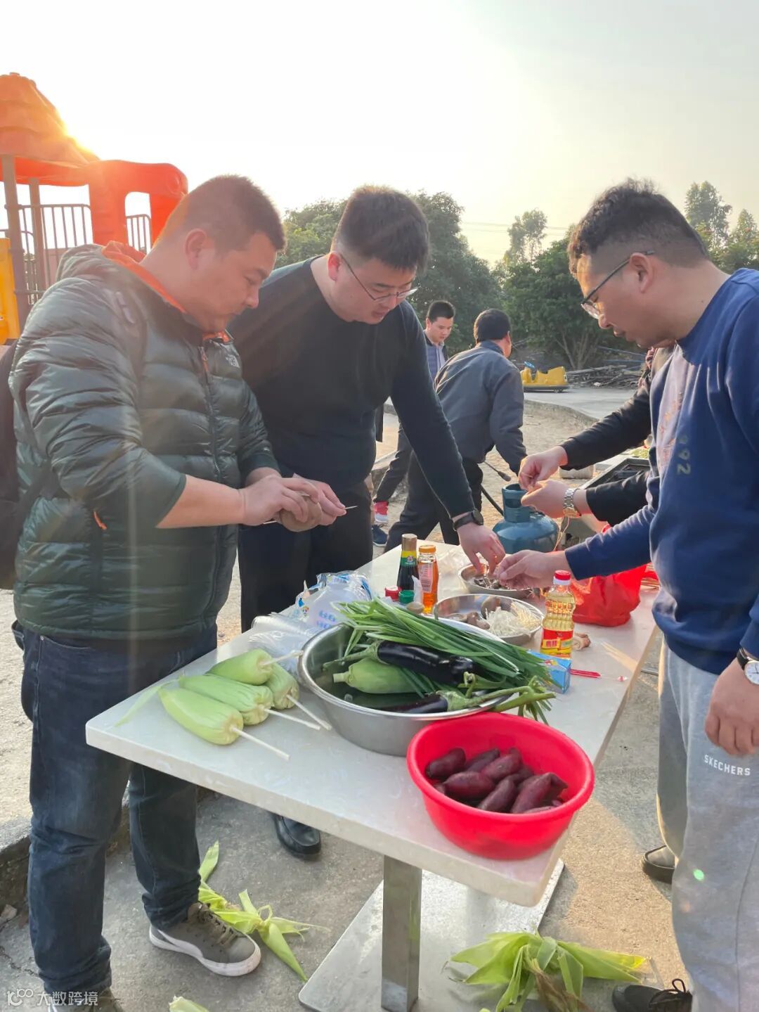 历经5小时登山,大家不免需要补充体力。在运营部的策划下,我们来到了不远处的亲子百果园,进行烧烤狂欢会。同事们分工协作,有的准备食材,有的担任大厨,大家协同一致,很快一盘盘美食就端上了餐桌。烧烤出炉,一眨眼的功夫就让大家分到了自己的碗里,很快就被吃得只剩骨头。在一片“我还想吃”的目光中,“专职”烧烤的伙伴再次奋斗在炉边,直到所有人最后都发出了“好棒”、“满足了”的感叹。