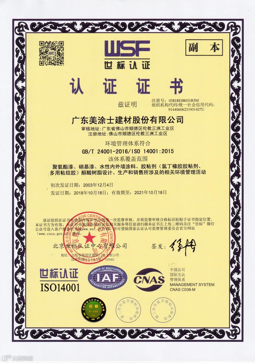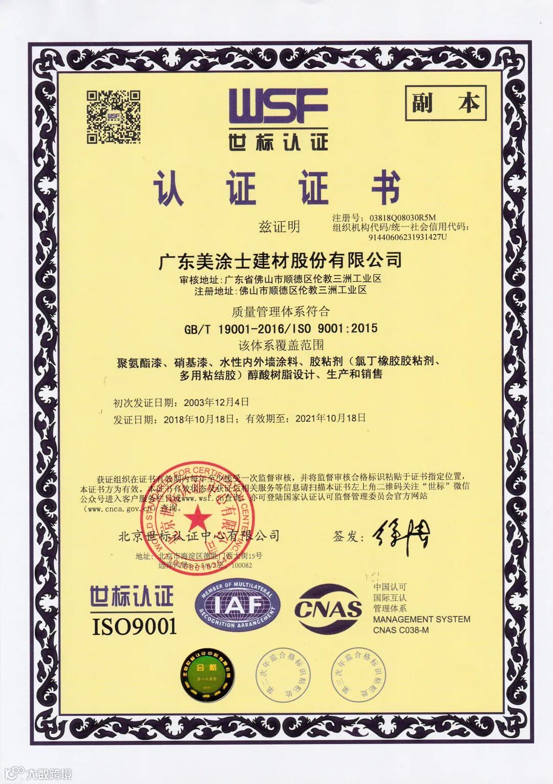 对于应用外墙的好涂料来说,用材和成品的环保健康也是重要之一,而美涂士产品按照国际标准生产,符合GB/T 18582-2020,且具有ISO90001\ISO14001等一系列环境管理体系认证。