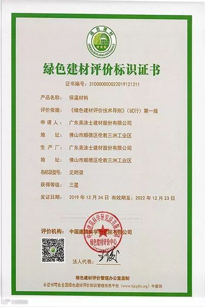 ●美涂士保温装饰一体板(岩棉)、保温装饰一体板(XPS)、保温装饰一体板(GEPS)获绿色建材评价标识证书