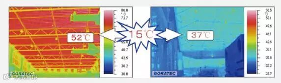 左边:普通顶棚 右边:加有反射隔热涂料
