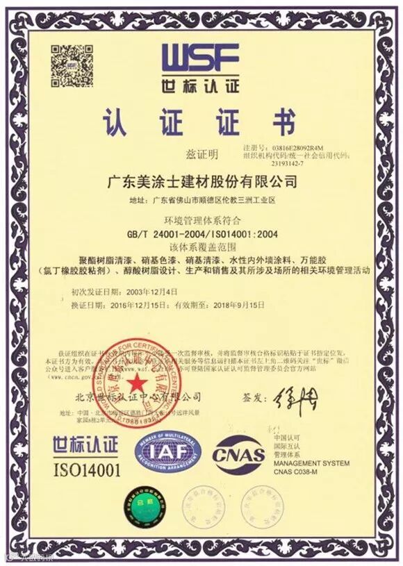公司自1997年创建以来,始终坚持以用户为中心,与客户共赢的核心价值观,赢得越来越多的客户赞誉和逐渐扩张的市场份额。公司始终坚持环境保护的原则,设立了专门的涂料实验室,研发高品质环保涂料产品。并于2001年率先获得ISO9001和ISO4001国际认证,参与行业强制性国家标准的制定,成为首批通过认证的品牌。